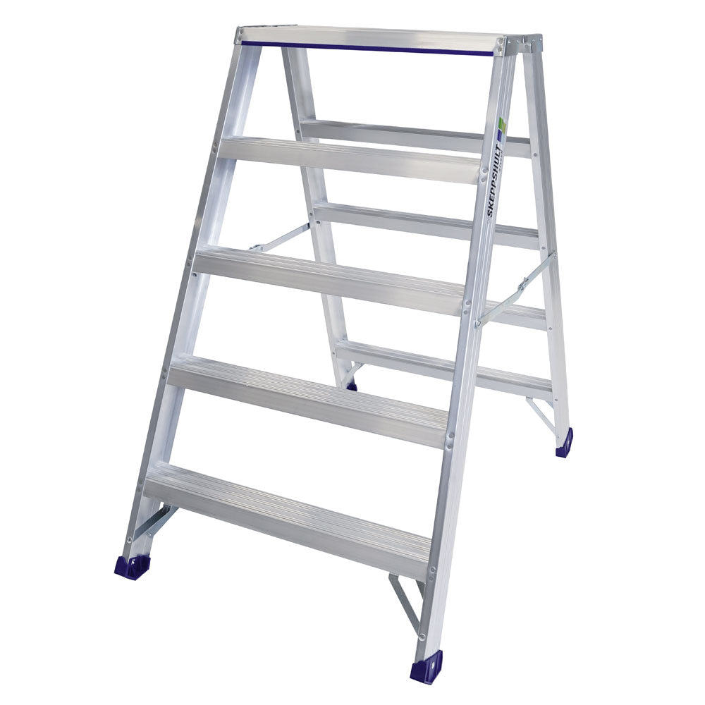 En stabil och rejäl arbetsbock tillverkad av aluminium. Arbetsbock 4250 har hydralnitade steg och en väl tilltagen plattform. Plattformens mått är 605x250mm och stegets djup är 81mm med dom kraftiga glid och golvskydden står bocken stabilt mot underlaget. Samtliga ben är förstärkta med stag mellan vagnstycke och steg, förstärkningen ger en ökad livslängd på bocken. Arbetsbocken finns i 4 höjder