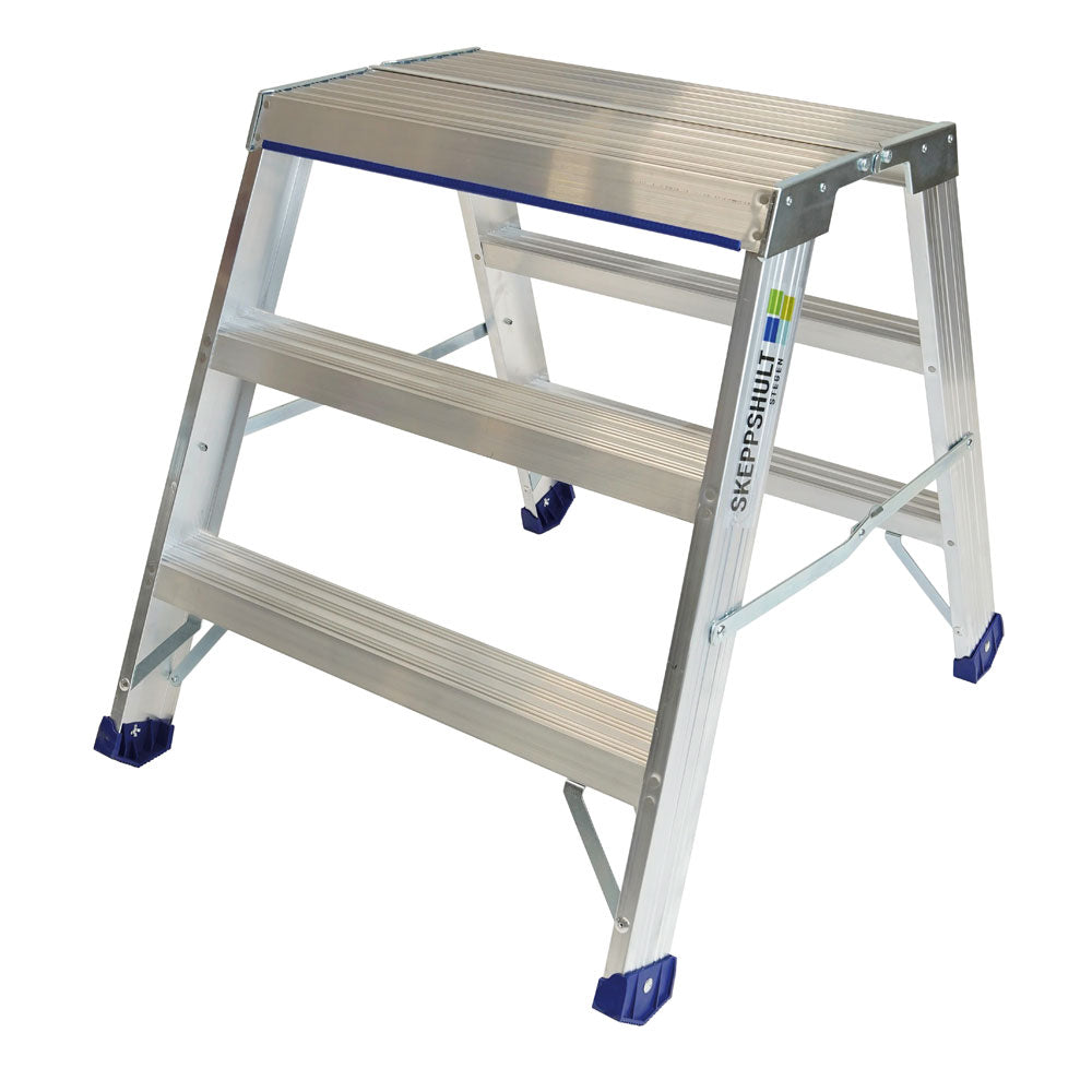 Arbetsbock Proffs Jumbo är en robust arbetsbock med stor plattform, 605x350mm, som passar för många ändamål. Försedd med förstärkningsstag på samtliga ben. Steg och plattform är hydraulnitade. Stegdjup 81 mm.