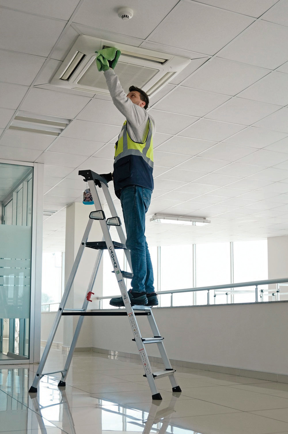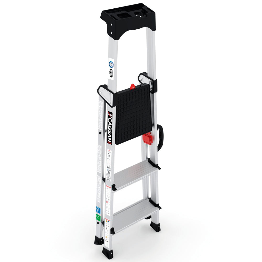 En trappstege i hög kvalitet med låg vikt som även passar till proffessionellt bruk.