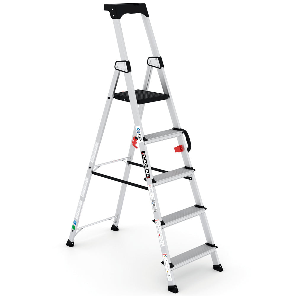 En trappstege i hög kvalitet med låg vikt som även passar till proffessionellt bruk.