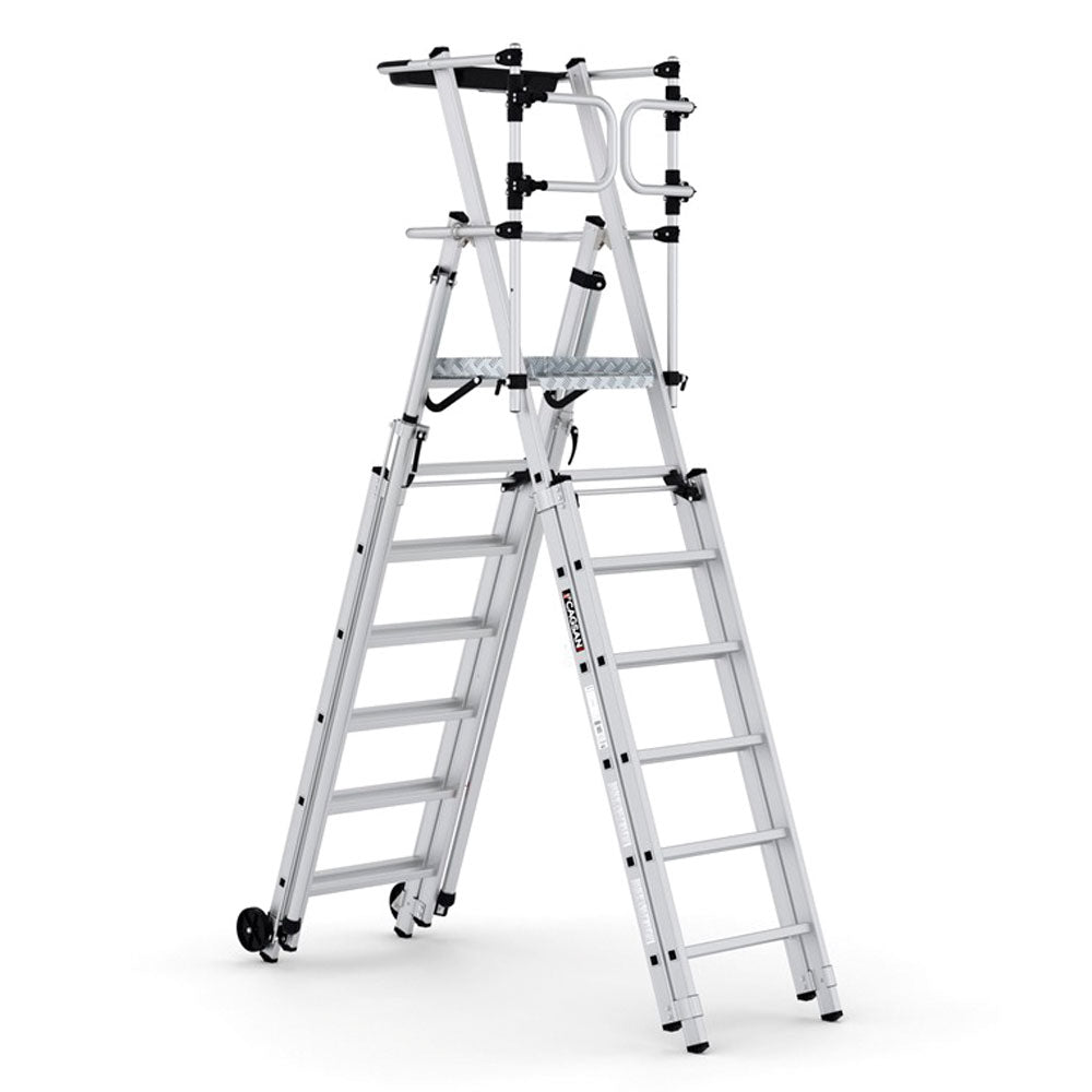 Den teleskopiska funktionen gör det möjligt för användare att justera plattformens höjd. Samtidigt är båda benen teleskopiskt justerbara, vilket gör att den kan användas säkert även på ojämna underlag.