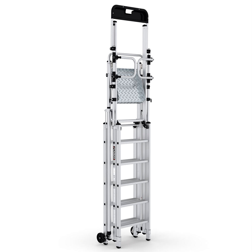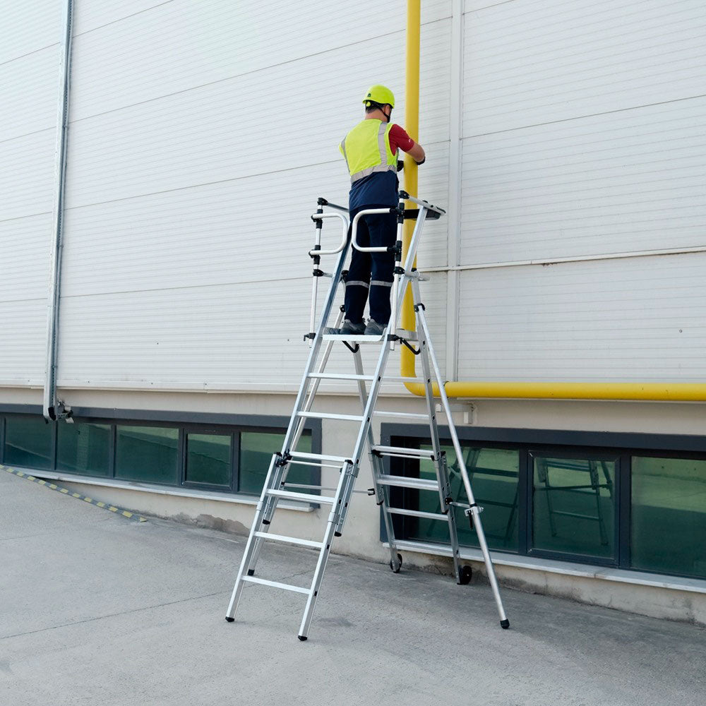 VEROX teleskopiska hopfällbara plattformstegar är tillverkade av lätta och hållbara material och kan enkelt transporteras tack vare hjulen på baksidan. Denna funktion gör det extremt praktiskt för användare att flytta sitt arbete från en plats till en annan.