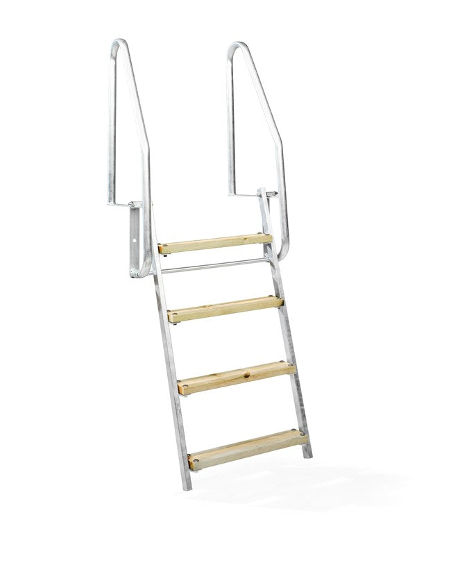 Bryggstegen är tillverkad i varmförzinkat stål.Trästegen är impregnerade och försedda med rejäla räfflor för minskad halkrisk. Monteras enkel med medföljande varmförzinkad bult. Bryggstege kan kompletteras med förlängningsdel. Stege och förlängningsdel levereras omenterade i separata kartonger.
